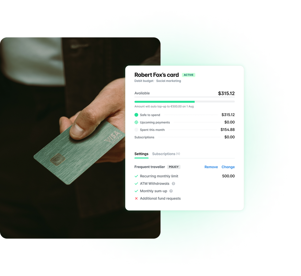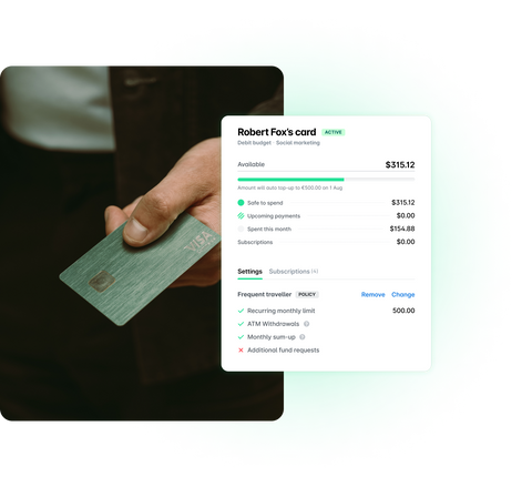 Allocate employee cards to team or project budgets and apply specific limits and workflows to these groups. Track spend easily and drive budget accountability across your fast-moving business.