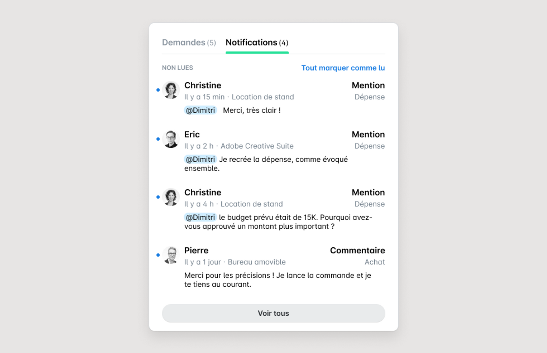 Les responsables d'approbation ont besoin d’informations précises pour approuver une demande de dépense avant qu'elle ne soit transmise à la comptabilité. Et cela nécessite bien souvent de nombreux allers-retours entre les différentes équipes pour clarifier certains détails de la demande. Avec nos fonctionnalités de commentaires et de mentions, le processus d'approbation est simplifié, et chacun peut accéder aux informations dont il a besoin (sans dépendre d'outils de communication externes).