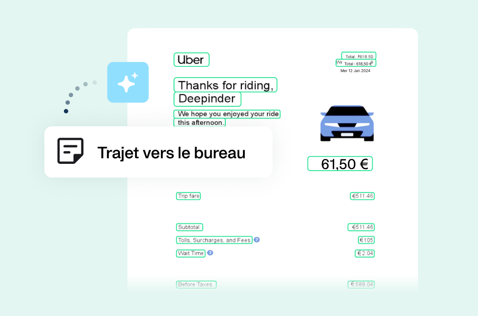 Gagnez du temps grâce aux notes de frais automatisées. Notre IA suggère le type de dépense en fonction des documents téléchargés (et de vos habitudes de dépenses), et vous pouvez toujours les modifier à tout moment. Les premiers utilisateurs ont déjà économisé 45 heures sur 17 000 notes de frais automatisées.